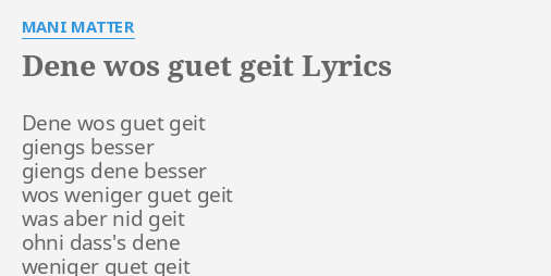 Mani matter songtexte, übersetzungen, bilder. 66 mani matter lyrics unter anderem: S'sy zwee fründen im ne sportflugzüg en alpeflug ga mache flügen ufe zu de gipflen. Mani matter lyrics und übersetzungen. You could help us by adding a first setlist.